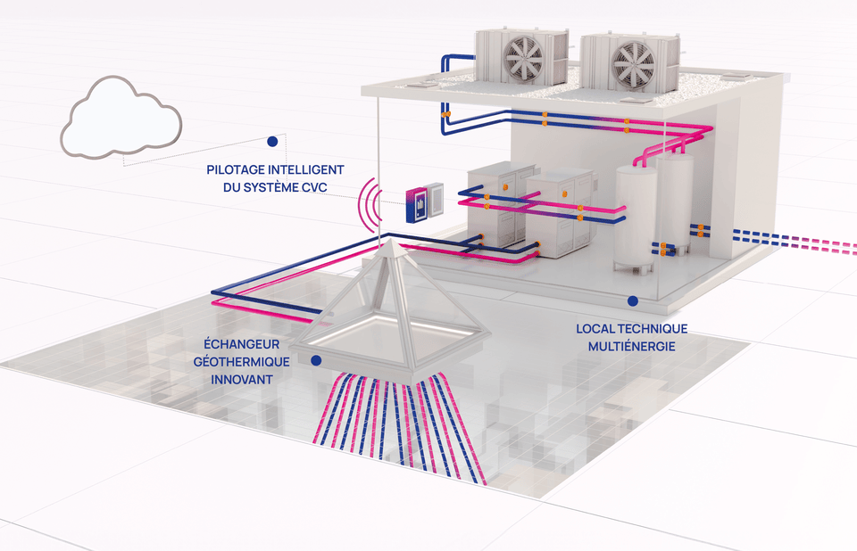 la géothermie si une nappe chaude se trouve en sous-sol comme dans le bassin francilien, une chaufferie au bois dans une zone forestière ou encore un réseau de chaleur en zone urbaine.