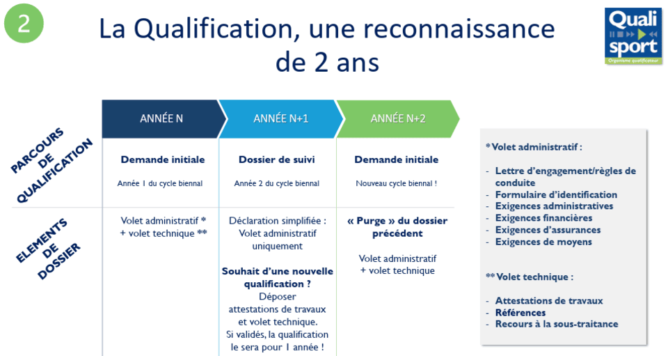 C’est un outil pédagogique qui offre des instructions claires et des informations pratiques pour une meilleure compréhension des enjeux liés à la qualification des entreprises au sein du secteur du sport et des loisirs. Il aide les maîtres d’ouvrage et donneurs d’ordre dans leurs recherches et sélections de prestataires : programmistes, constructeurs, entreprises d’entretien-maintenance…