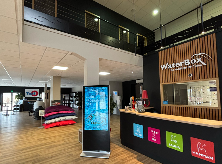 Les dirigeants d’Ascomat, Franck et Rachel George, sont également à l’origine du réseau Waterbox, une initiative destinée à accompagner les professionnels souhaitant ouvrir leur propre concept store. Ce réseau repose sur une approche marketing novatrice, pensée pour optimiser l’expérience client grâce à un agencement structuré : zone d’accueil, espace wellness, secteur chimie/analyse et bien entendu un univers dédié à la piscine.