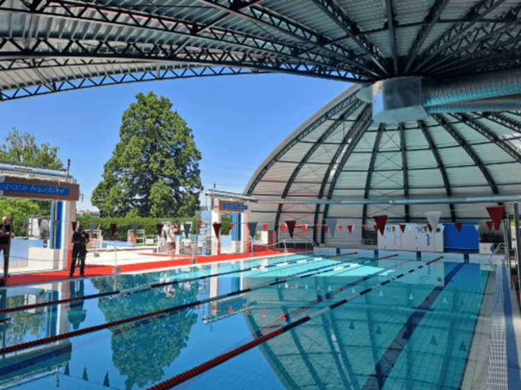 La piscine dispose d'une surface totale de 1 100 m² dont 110 m² en extension pour la création de locaux annexes ainsi qu'un solarium de 70 m². Son bassin de 25 x 10 m (2,20 m de profondeur) a été mis en conformité : création d’une goulotte finlandaise, étanchéité, revêtement carrelé, équipements bassin… Il accueille des cours de natation enfant et adulte, mais aussi diverses