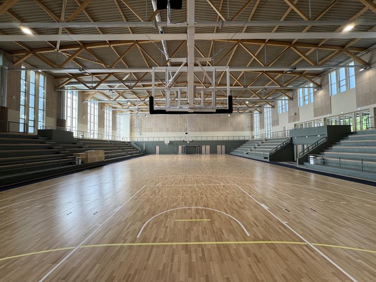 Au niveau sportif, la société Sportingsols a installé un nouveau parquet massif : le Reflex M Evolution de Tarkett Sports. Ce parquet contrecollé (22 mm d’épaisseur) avec simple lambourdage et mousse intégrée, fournit une très bonne absorption de chocs (entre 55 et 75 %) et un bon retour d’énergie.