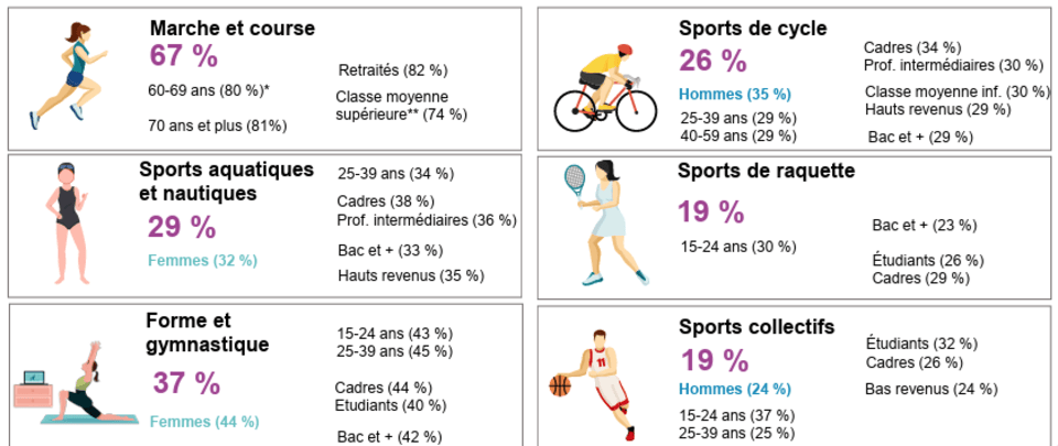 Par ailleurs, les 360 000 associations sportives françaises ont représenté un budget global de 16 milliards d’euros en 2024. Elles peuvent compter sur environ 3,5 millions de bénévoles. Près de 36 500 associations sportives sont employeuses et emploient 142 000 salariés, soit l’équivalent de 67 000 équivalents temps plein selon l’Insee. De plus, 70 % du budget des associations sportives est assuré par les adhérents/usagers. Les subventions publiques, quant à elles, représentent 17 %.