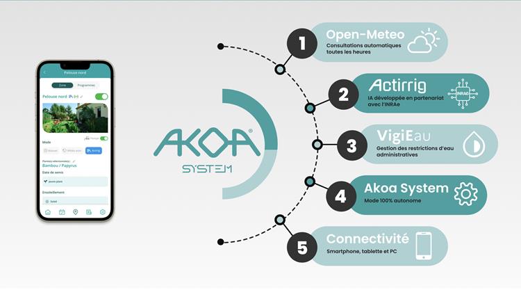 Akoa System allie intelligence artificielle, connectivité avancée et simplicité d’utilisation pour offrir une gestion rationnelle de l’arrosage :