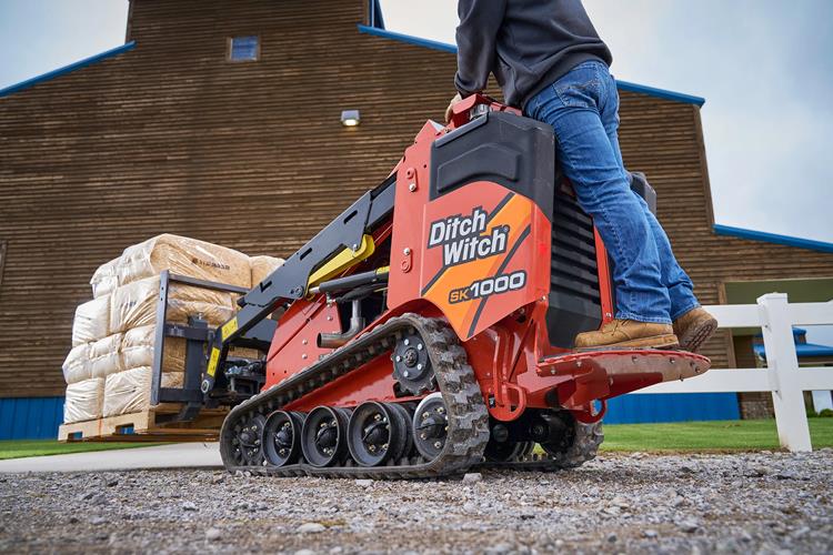 Ditch Witch a également travaillé sur la facilité d’entretien. Le SK1000 adopte une conception de chenilles à galets ouverts,