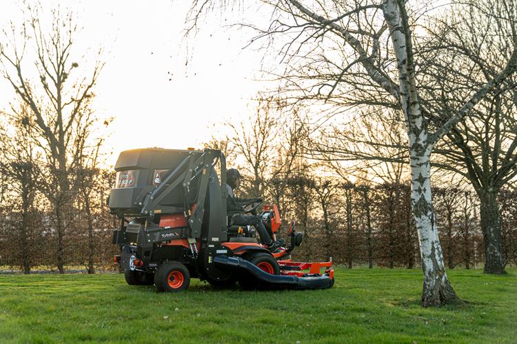 un bac de 800 L équipé d’un déflecteur, permettant de repartir efficacement l’herbe coupée dans le bac de ramassage. Enfin, l’ensemble des fonctions de la machine est regroupé sur une console unique située à droite du conducteur, permettant de piloter facilement le plateau de coupe, le bac de ramassage, la turbine ou encore l’éclairage.
