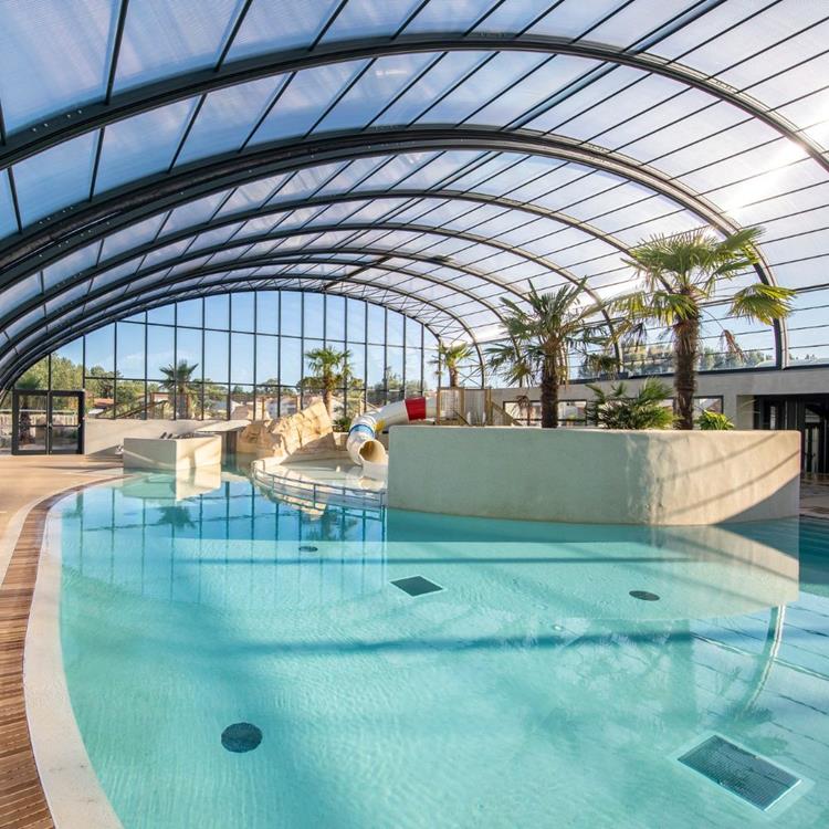 abri de piscine qui répond aux attentes concrètes des particuliers : simplicité d’usage, confort visuel et optimisation de l’espace grâce à une ouverture centrale ingénieuse et des parois panoramiques.